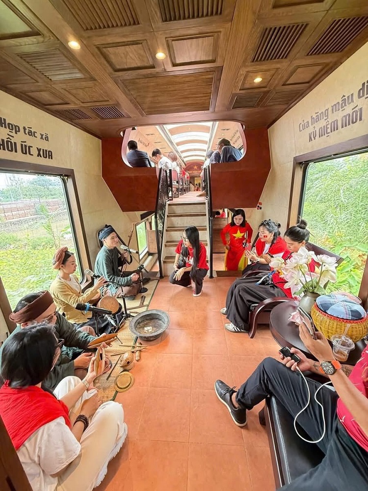 Có những toa phụ dành riêng cho check-in, chụp ảnh, thư giãn. Tại điểm đến (Từ Sơn/ khu vực Bắc Ninh), khách được bố trí thời gian (khoảng 1 giờ 30 phút) tham quan Đền Đô, trải nghiệm văn hoá địa phương rồi quay lại bằng tàu.