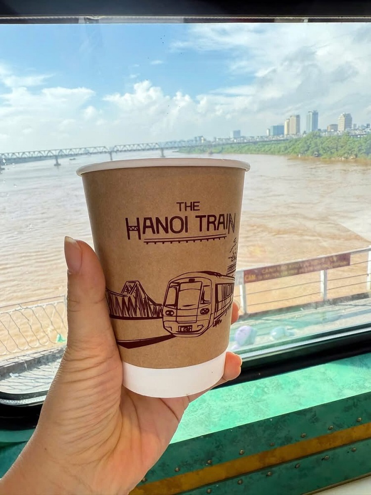 Cửa kính rộng mở giúp hành khách ngắm nhìn cảnh vật hai bên đường, đặc biệt qua khu vực cầu Long Biên, các ga lịch sử, dòng sông Hồng, phố phường Hà Nội.