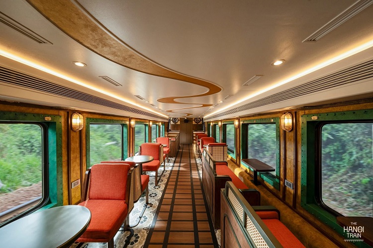 Tàu “5 Cửa Ô” được lấy cảm hứng từ hình ảnh Hà Nội cổ kính với 5 cửa ô nổi tiếng biểu tượng của Thủ đô. Không gian trên tàu được thiết kế mang nét hoài cổ pha hiện đại, du khách sẽ có cảm giác như trở về Hà Nội những năm 80 - 90.